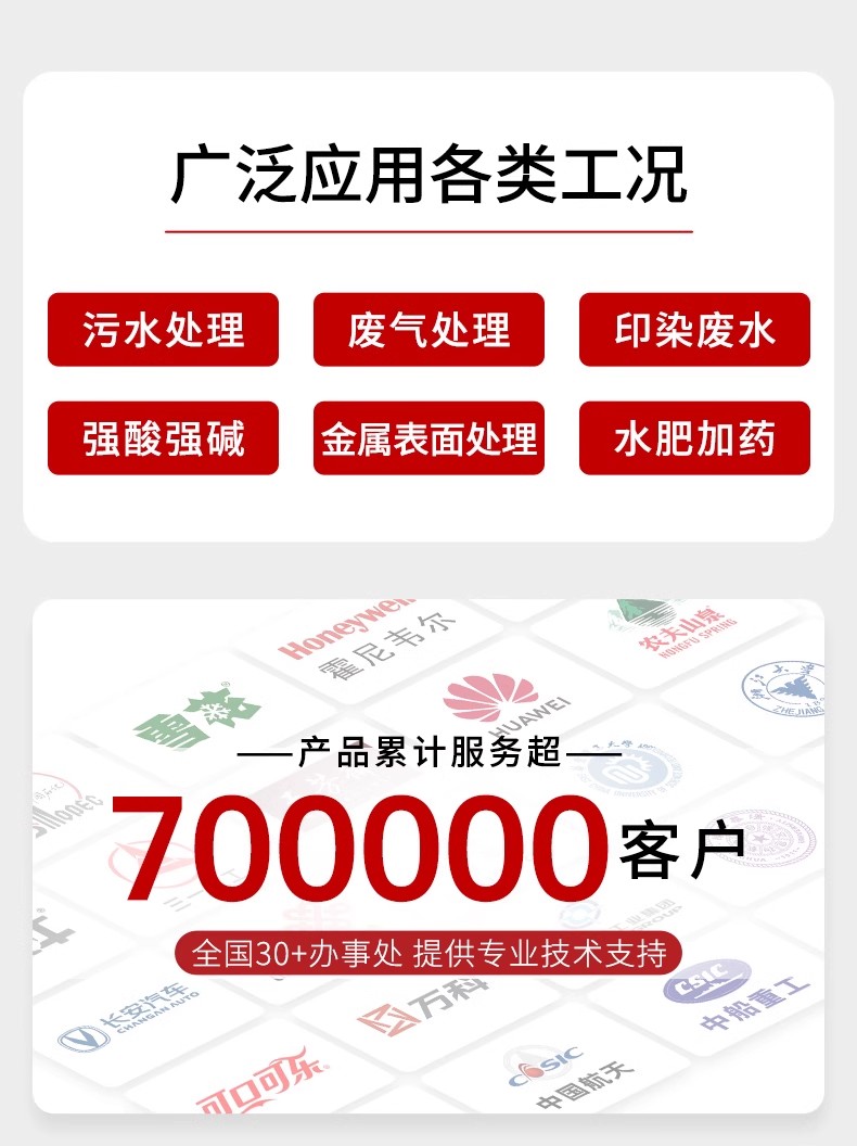 pH/ORP 控制器广泛应用于火电、化工化肥、冶金、环保、制药、生化、食品和自来水等行业,对溶液中 pH 值或 ORP 值和温度连续监测。连续监测数据通过变送输出连接记录仪实现远传监控与记录。CN5
