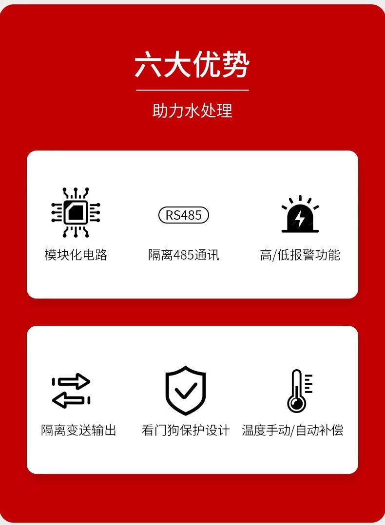 采用隔离变送输出,受干扰影响更小; 具有组态温度手动、自动补偿功能