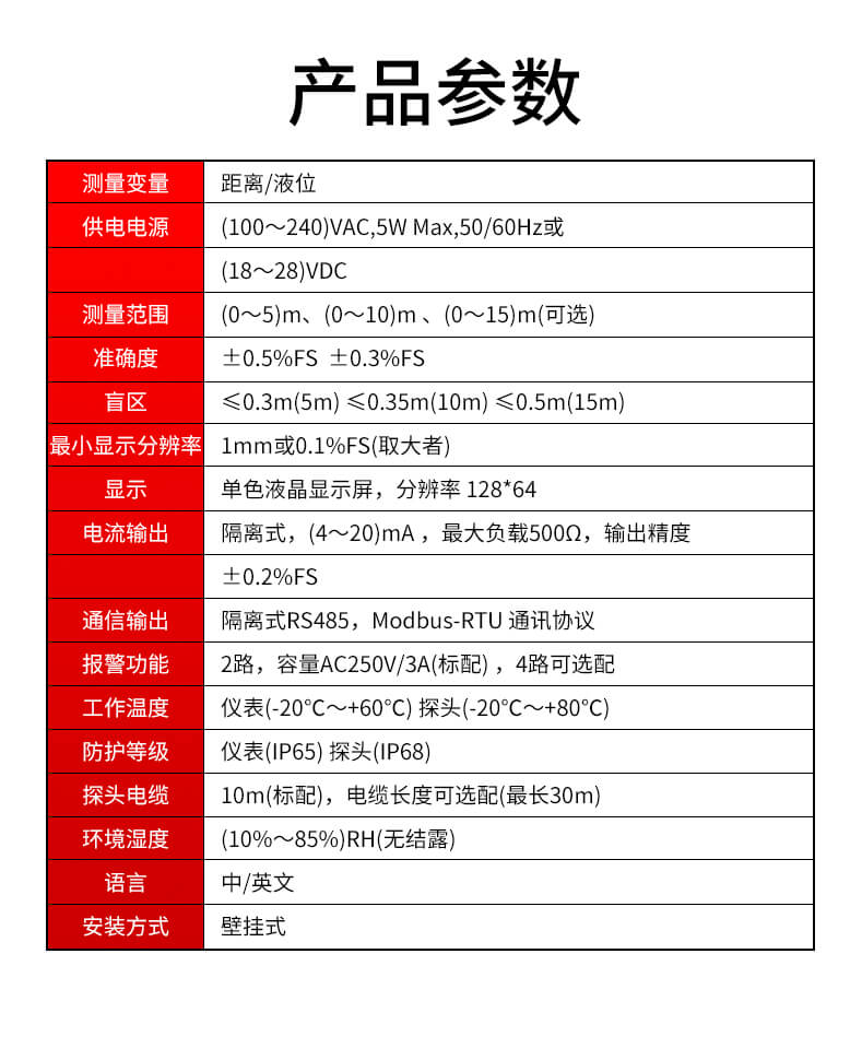 (0~5)m、(0~10)m、(0~15)m(可选)